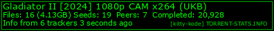 - Gladiator II [2024] 1080p CAM x264 (UKB).nfo (3.3 KB) samples Torrent Downloaded From