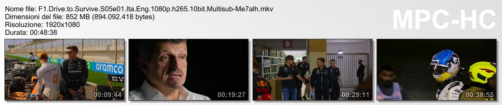 Formula 1 Drive to Survive S05e01-10 (1080p Ita Eng h265 10bit MultiSub) byMe7alh- F1.Drive.to.Survive.S05e01.Ita.Eng.1080p.h265.10bit.Multisub-Me7alh.mkv (852.7 MB)