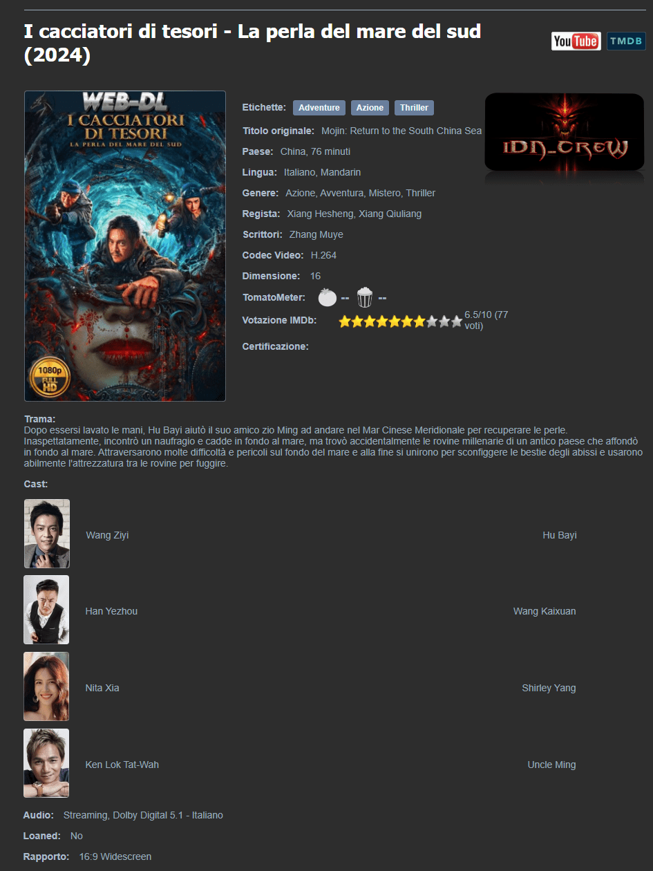 Nome completo : C:\I Cacciatori Di Tesori La Perla Del Mare Del Sud (2024) 1080p WEB-DL h264 Ac3 Ita - iDN_CreW.mkv