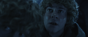 Awakening from a dream of Gandalf fighting the Balrog in Moria,[a] Frodo Baggins finds himself, along with Samwise Gamgee, lost in the Emyn Muil near Mordor. They discover that they are being tracked by Gollum, a former bearer of the One Ring. Capturing Gollum, Frodo takes pity and allows him to guide them into Mordor, despite Sam's reservations. Aragorn, Legolas, and Gimli pursue a band of Uruk-hai to save their companions Merry and Pippin, entering the kingdom of Rohan. The Uruk-hai are ambushed by a group of Rohirrim, allowing Merry and Pippin to escape into Fangorn Forest. Meeting Aragorn's group, Rohirrim leader Éomer explains that Rohan's king has exiled him and his men, Théoden, who is under the control of Saruman and his servant Gríma Wormtongue. Éomer believes Merry and Pippin were killed during the raid but leaves the group with two horses. In Fangorn, Aragorn's group encounters Gandalf, who, after dying in battle fighting the Balrog, was resurrected as Gandalf the White to help save Middle-earth.