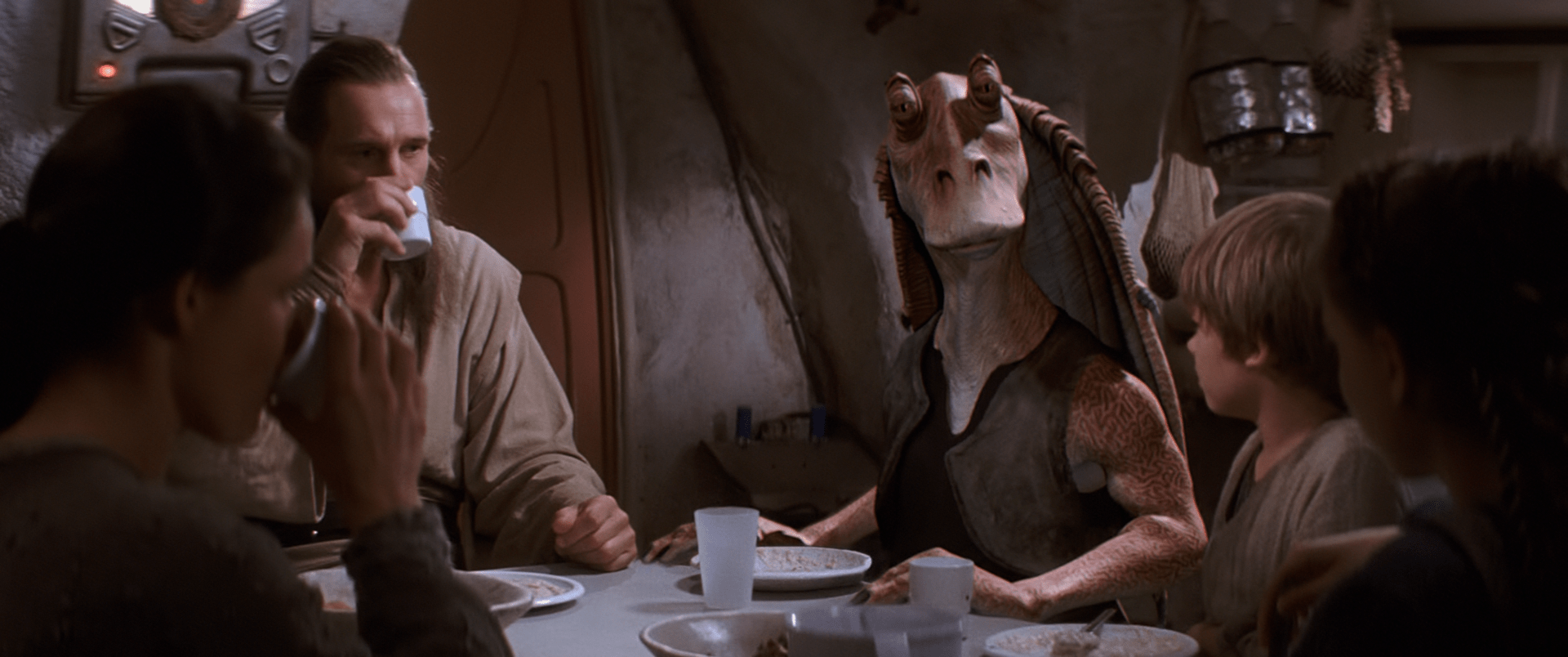 (32 Years Before Episode IV) Stranded on the desert planet Tatooine after rescuing young Queen Amidala from the impending invasion of Naboo, Jedi apprentice Obi-Wan Kenobi and his Jedi Master discover nine-year-old Anakin Skywalker, a young slave unusually strong in the Force.