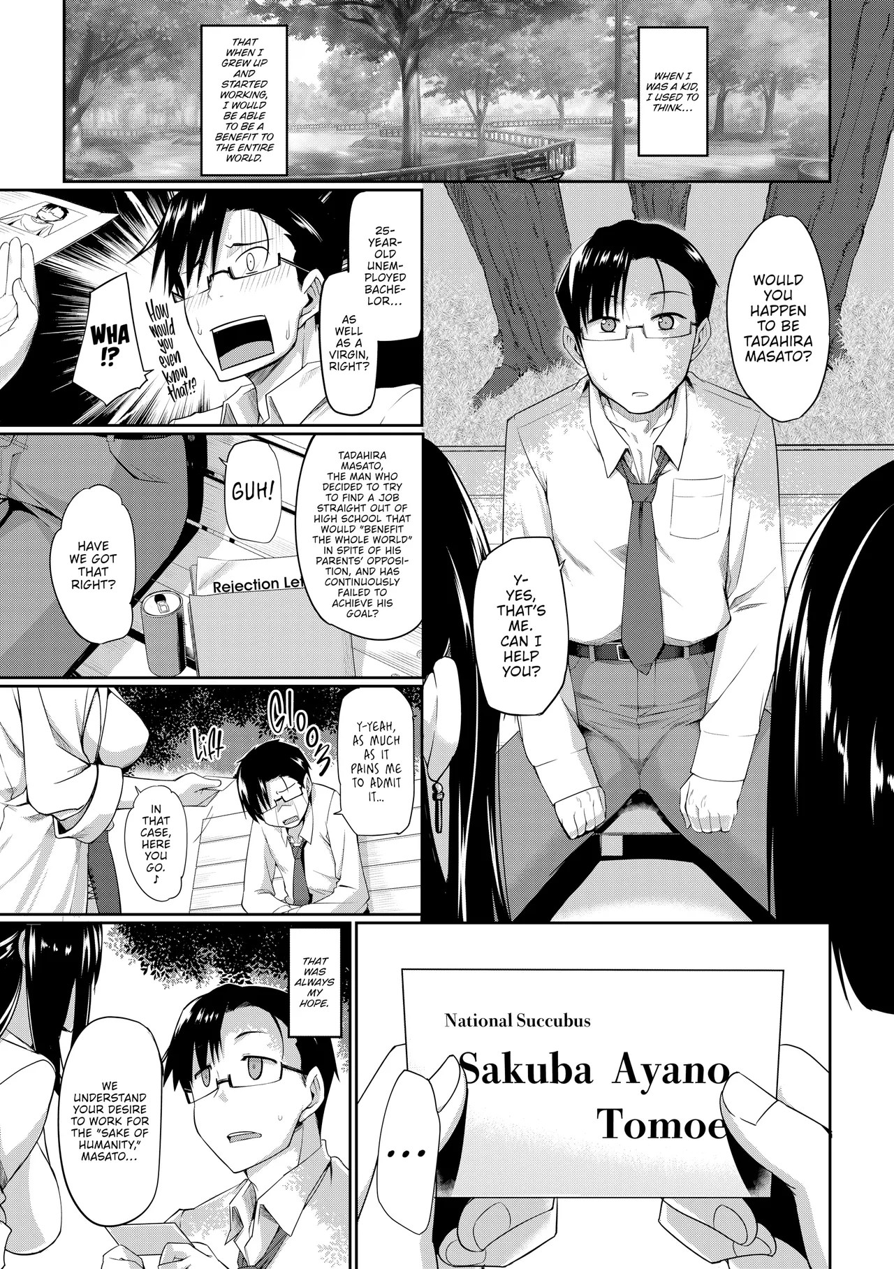 Masato might be an unemployed, virgin bachelor, but ever since he was a kid, he's wanted to do something that could benefit the world. With it looking like he'll never achieve his dream, Masato's approached by two sisters who might give him that chance. Tomoe and Ayano work with a succubus organization seeking pure human blood and Masato is one of the last remaining pure-blooded humans in existence! With his essence carrying immeasurable value to succubi, they hire him to suck every satisfying ounce of seed straight from the tap. But once he's revealed to the greater succubus public, will he have the will and strength to accomplish his goal?