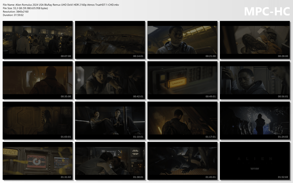- Alien Romulus 2024 USA BluRay Remux UHD DoVi HDR 2160p Atmos TrueHD7.1-CHD.mkv (55.3 GB)