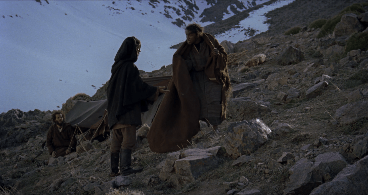 A dying Sheikh travels across the Moroccan Atlas in a caravan escorted by two rogues.