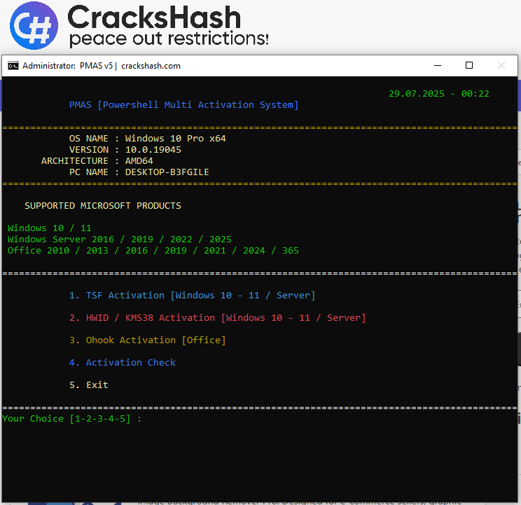 PMAS - PowerShell Multi Activation System v9.0 (Activate Windows and Office) {CracksHash}